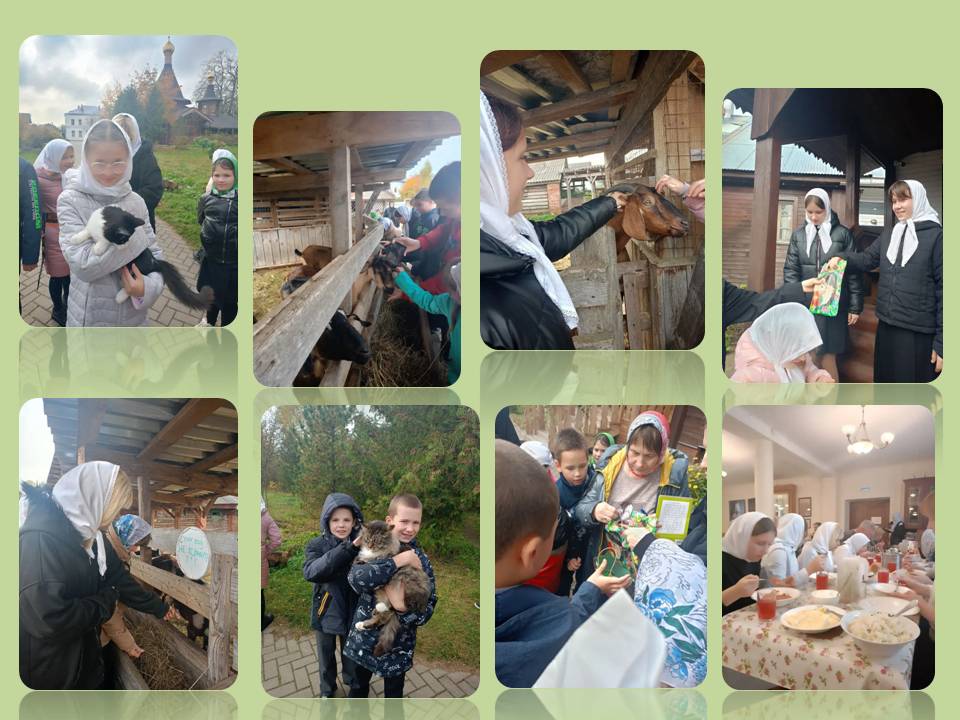 После вкусной трапезы ребята посетили хоз двор, где "пообщались" и сфотографировались с осликом Иерихоном, козами, барашками, теленком и коровами. Множество кошек, «курирующих» территорию монастыря, то и дело попадали в руки юных паломников.